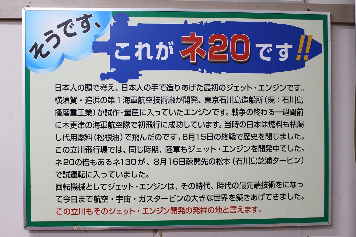 陸上自衛隊立川駐屯地の中には「史料館」という展示館があります。以前はこの「史料館」は「立川防災航空祭」のときでも公開していなかったと思いますが、今年(2019年)は公開されていましたので、今回初めて「史料館」の展示物を見ることができました。「史料館」内部にはヘリコプター用のエンジン、太平洋戦争中の古い新聞や航空機用エンジンの過給機(スーパーチャージャー)の翼車(インペラ)、その他、様々な展示物が所蔵されていました。日本初の国産ジェットエンジン「ネ20」についての展示もありましたが、写真のみで実物はありません。(ネ20の実物はIHIの昭島事業所に保管されています。)また「史料館」に隣接する庭地には退役したヘリコプターなどの航空機が展示されていてこれもまた初めて見学することができました。