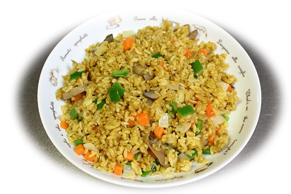 カレーチャーハンは、チャーハンを作る要領で、調味料としてカレー粉を使い、炊いた「ご飯を」炒めたものです。また見た目はカレーピラフと基本的に同様です。 ちなみにネット検索で見た様々なカレーチャーハンは主に洋風のものが多かったのですが 中華料理のような外観に仕上げるものもありました。 その場合、通常のチャーハンと同様に溶き玉子を入れ炒めたり、 なるとや青ネギ、長ネギなどを混ぜたり、器に半球状に盛って紅しょうがを添えてたりするものが見られました。 |