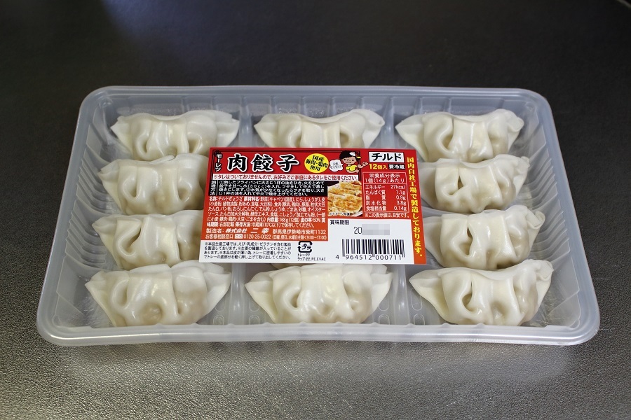 肉餃子が12個入っていますが、価格はなんと税別100円です。(1個あたり税別で約8円)