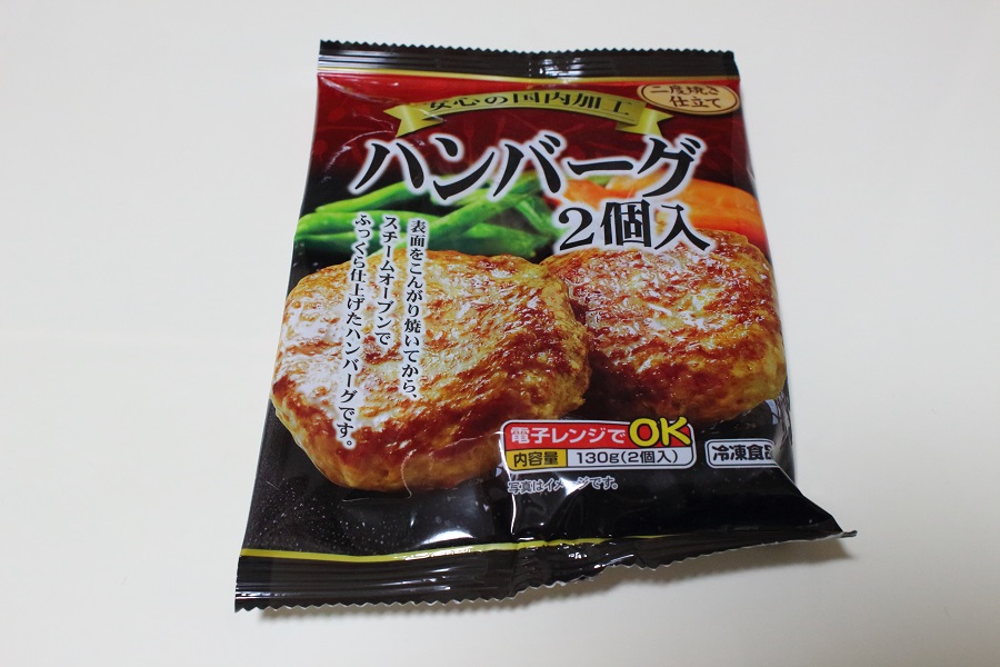 今回使用した冷凍ハンバーグはローソンストア100で購入したものです。