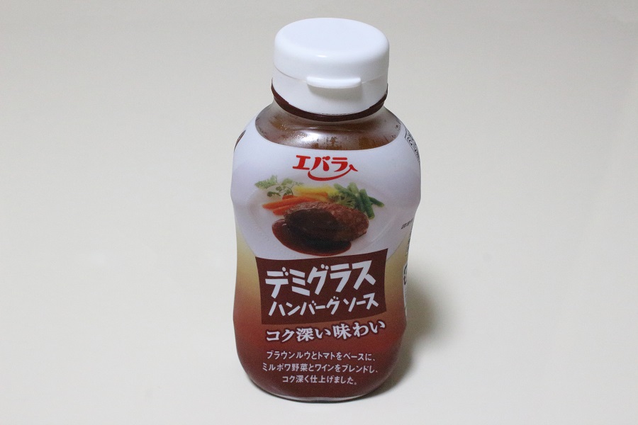 用意しておいた「デミグラスソース」(適量)をハンバーグにかけて完成。