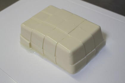 写真のように絹ごし豆腐を、縦4×横3×高さ2ぐらいに切っておきます。 |