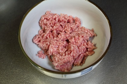 写真のように、合い挽き肉(80~100g程度)を用意しておきましょう。 |