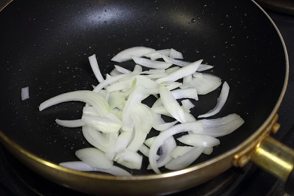事前にスライスしておいた玉ねぎを炒めましょう。 |