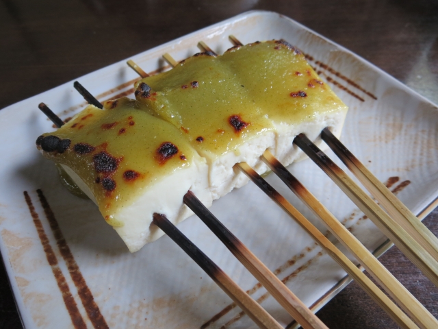 「豆腐田楽」は長方形に切った豆腐を串に刺し、練り味噌を塗って焼いたものであり、現在でも食されている料理です。