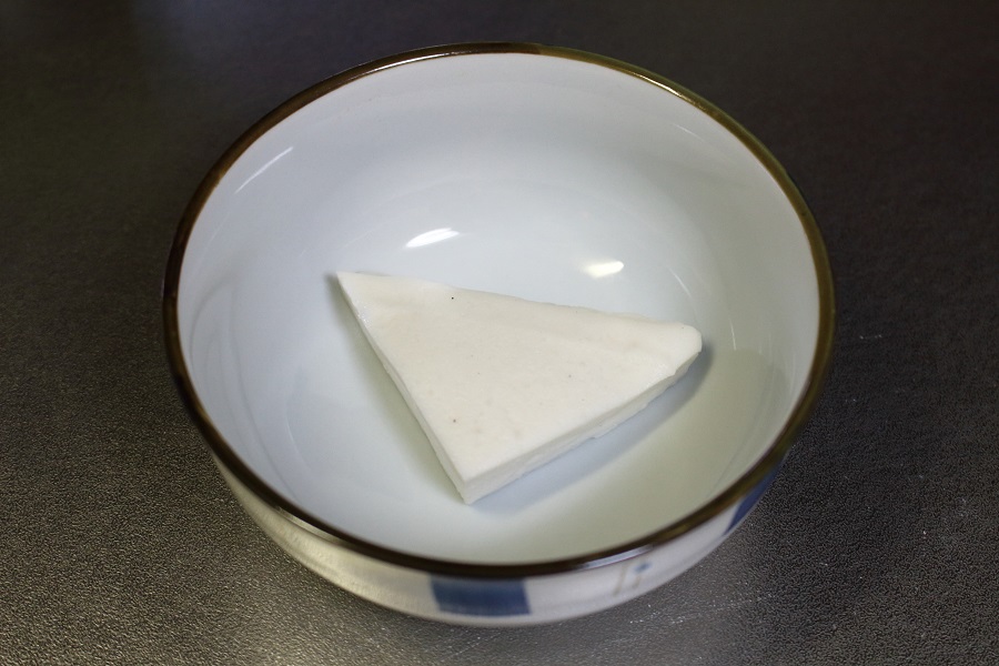 具材として使うこんにゃくは適量です。今回は左の写真ぐらいのこんにゃくを用意しました。 |