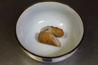 ごぼう巻きを斜めに切ったもの2片を具材として用意する。
