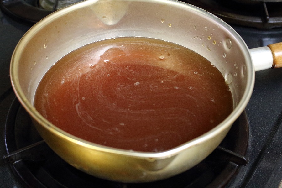 雪平なべに醤油を大さじ1+小さじ2入れる。