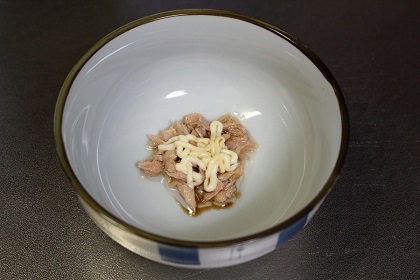 ツナを入れた器にマヨネーズ(適量)、醤油(適量)も入れます。 |