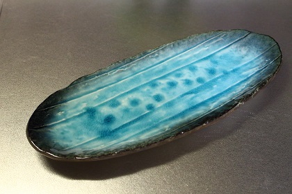 これも合羽橋道具街で購入した皿。やはり青系統です。この皿は明治42年創業の老舗「小松屋」(こまつや)というお店で購入しました。 |