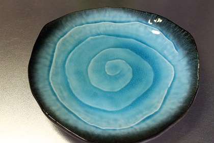合羽橋道具街で購入した皿。青系統なので、おにぎりを載せる皿として彩りが良いと思って選びました。 ちなみにこの皿は全国各地の和食器などを多く扱っている「田窯」(でんがま)というお店で購入しました。 |