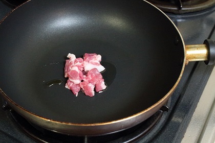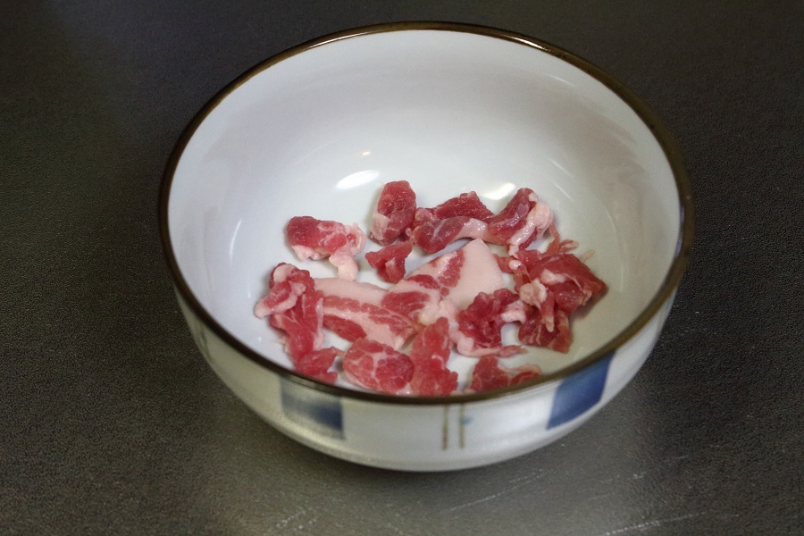 豚肉(適量)を小さく切って用意しておく。