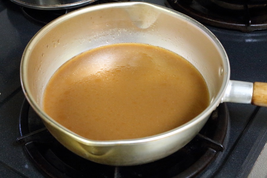 雪平なべの中身を混ぜておく。