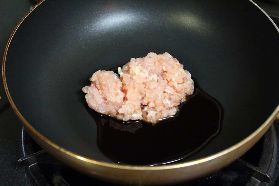 鶏ひき肉を用意する。(80g 程度)