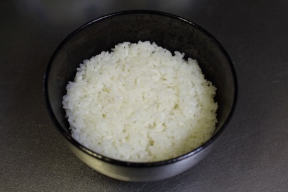 ご飯(3/4 合)を炊き、ご飯茶碗に用意しておく。(上面を平らにしておく)