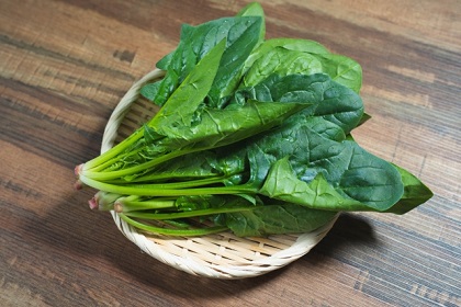 「鶏そぼろ丼」3色目の緑色の食材例(1) 「ほうれん草」(フリー画像) |