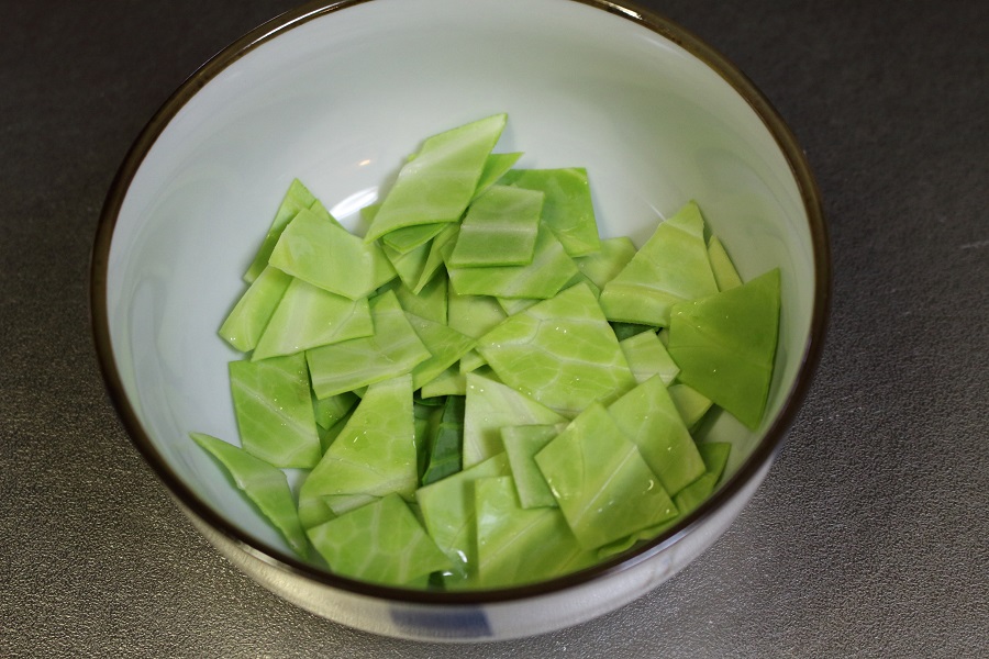 キャベツの皮を洗い、ざく切りで適量をカットする。
