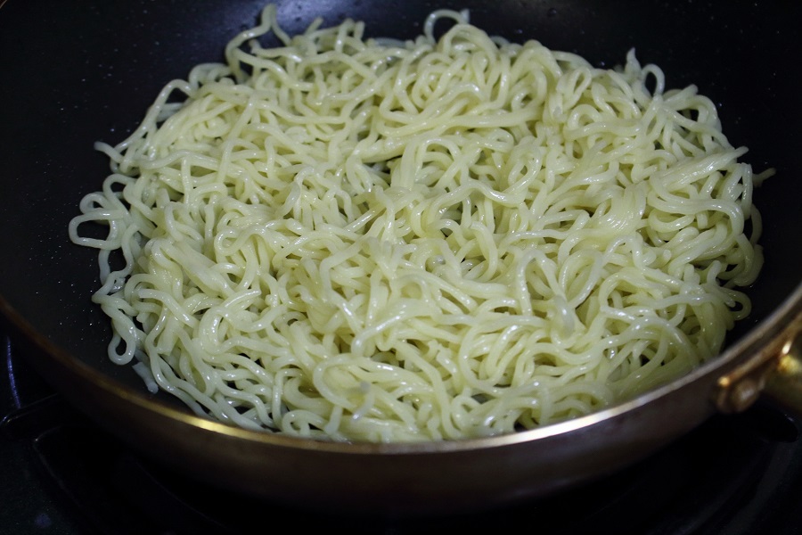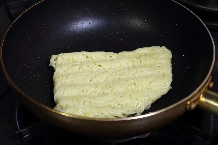 →水を少量入れているので麺がほぐれます。 |