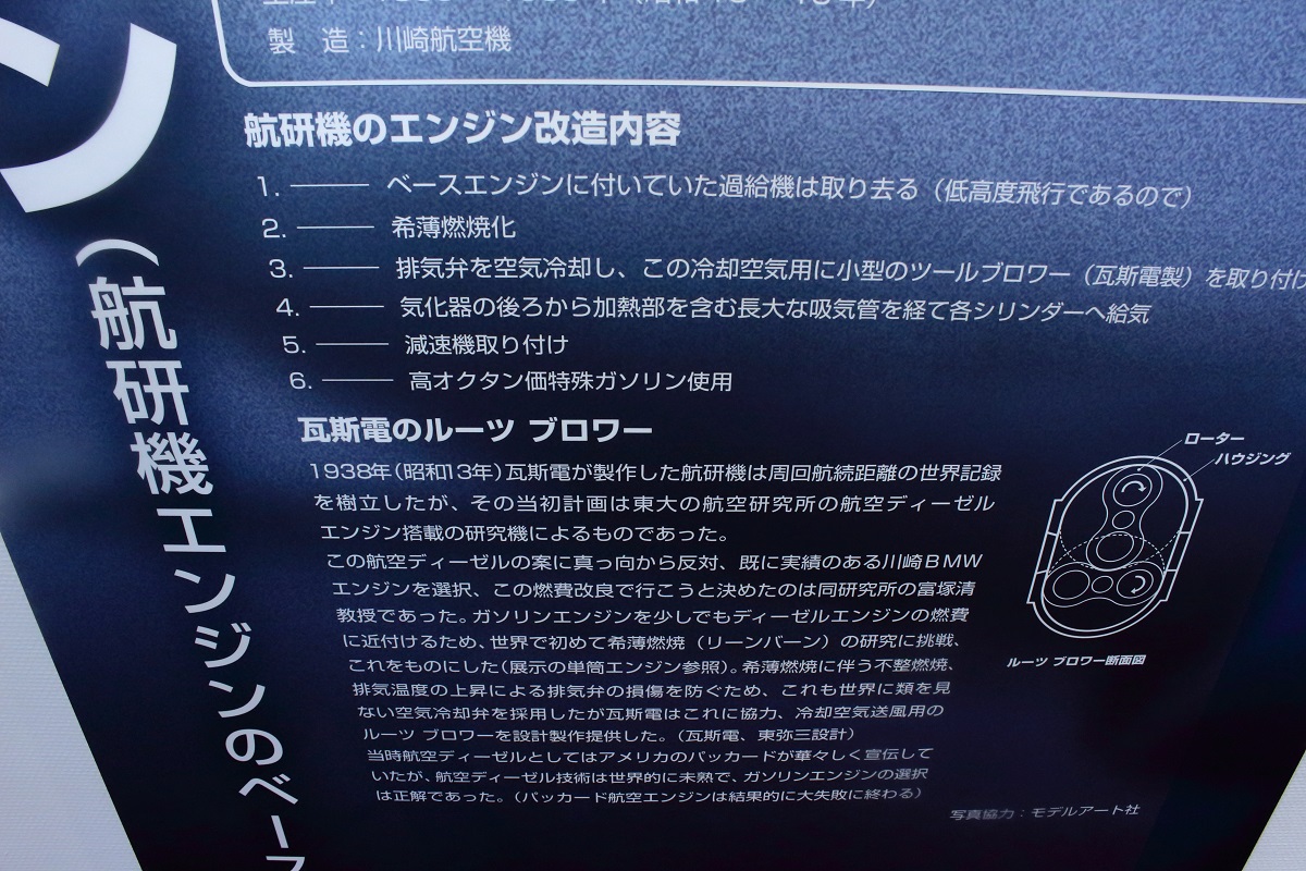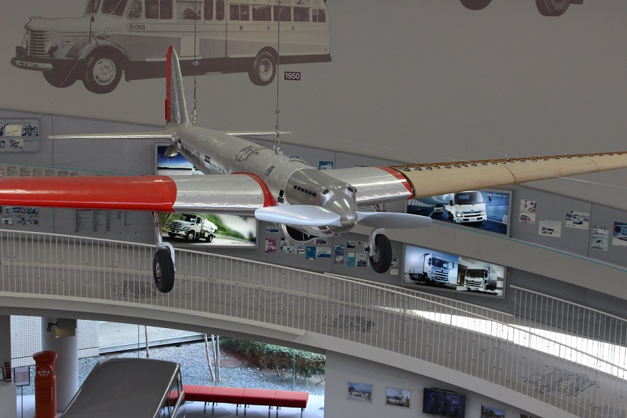 日野オートプラザには日野自動車と関わりの深い「航研機」についての展示も行われています。