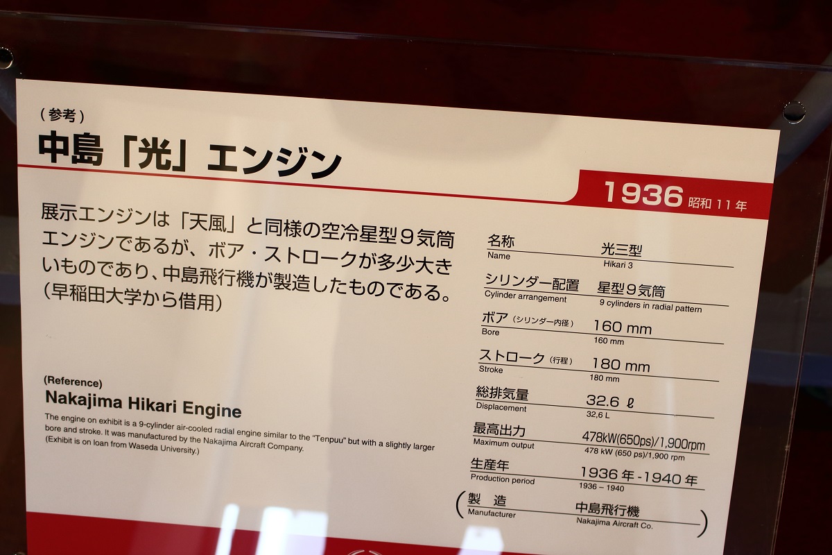 光エンジンは、米ライト社のR-1820「サイクロン」エンジンを参考にして中島飛行機(現在のSUBARU社)が開発、製造した航空機用の空冷星型エンジンです。1936年には海軍から光エンジンの一型、二型が制式採用されています。