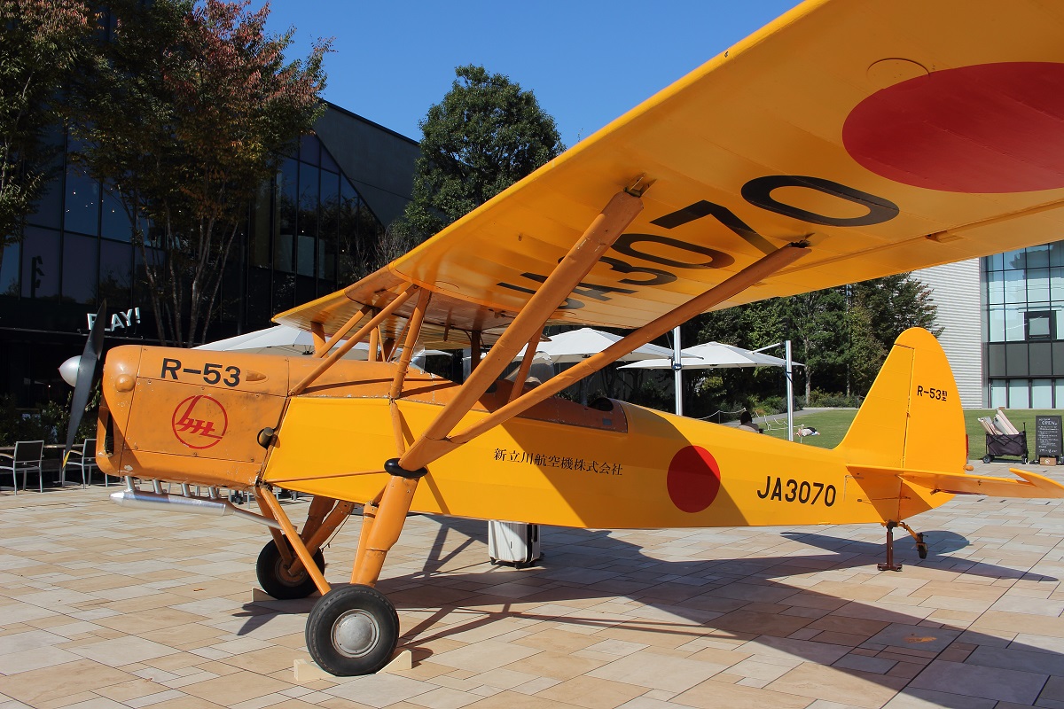 R-53は新立川航空機(現立飛ホールディングス)よって製作された戦後初の国産飛行機であるR-52を改良した軽飛行機です。1953年(昭和28年)に製作されました。機体設計は基本的にR-52と同じで、エンジンがイギリス製のシラス・メジャー(155hp)に換装されています。R-53は全日本学生飛行連盟に貸与され、日本一周飛行に参加し耐久性の高さを示しましたが、購入先は残念ながら現われませんでした。 その後、R-53は一旦、航空大学校での練習機として使用され、1957年に新立川航空機(現立飛ホールディングス)に返却されました。