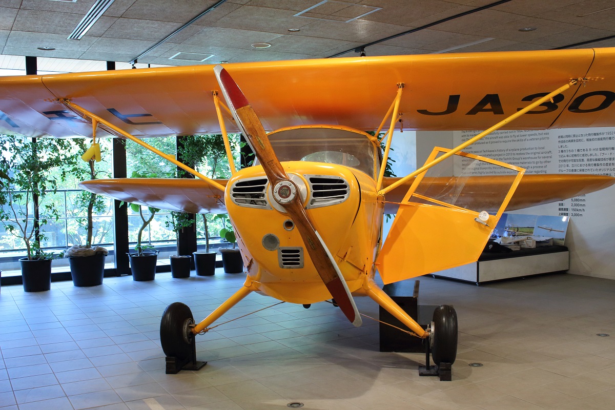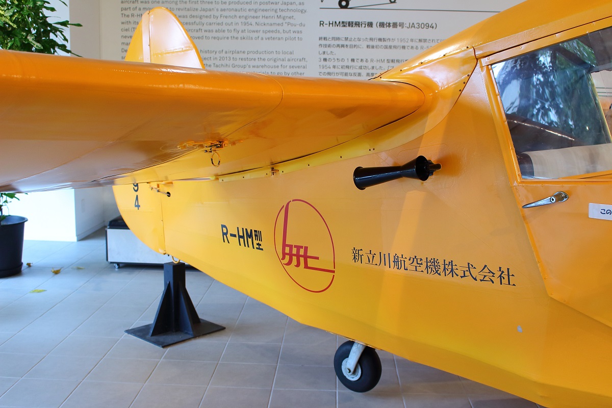 R-HMは1954年(昭和29年)にフランス人技師アンリ・ミニエの指導のもと新立川航空機(現立飛ホールディングス)によって試作された軽飛行機です。同年10月に初飛行に成功しています。(新立川航空機としてはこのR-HMを海外の飛行場が未整備の国に輸出することを考えていました。)