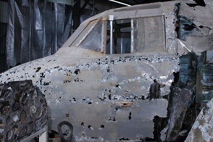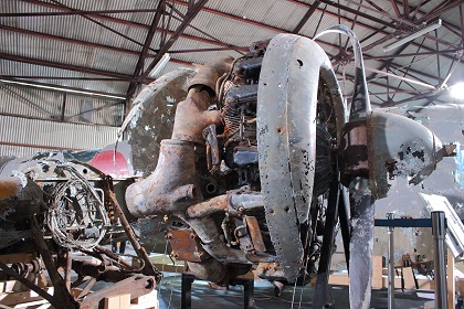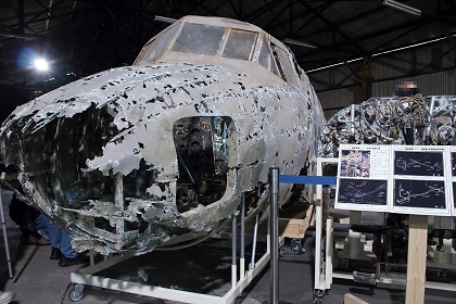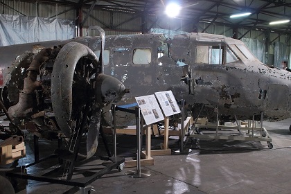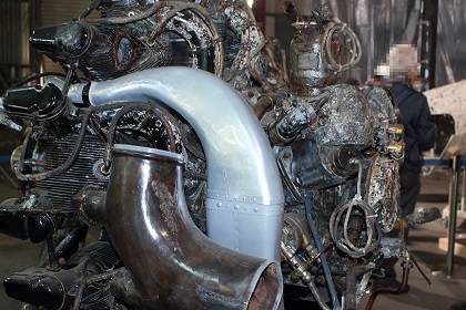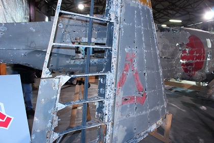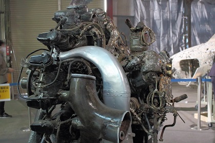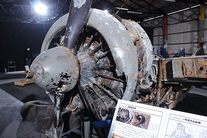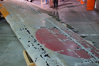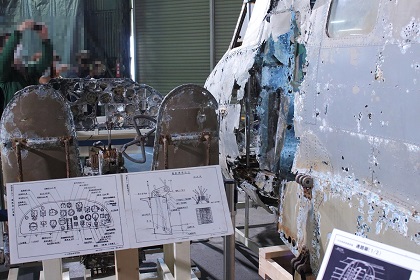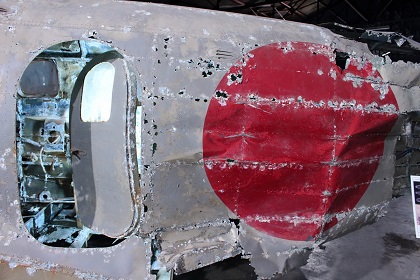 なお今回の展示は前回同様、一式双発高等練習機は組み立てられた状態ではなく、胴体、左右主翼、水平尾翼、垂直尾翼がそれぞれ個別に展示されていました。(ちなみに以前、同機が青森県立三沢航空科学館で展示されていたときは組み立てられた状態での展示でした。)また同機は十和田湖から引き揚げられたものですが、前述の通り、機体が沈んでいた湖が淡水で湖底の水温も低かったことから機体はあまり劣化していない状態であり、機体の塗装も湖に沈んだ当時のままに近く、胴体や主翼の日の丸もオリジナルの色がかなり残っています。