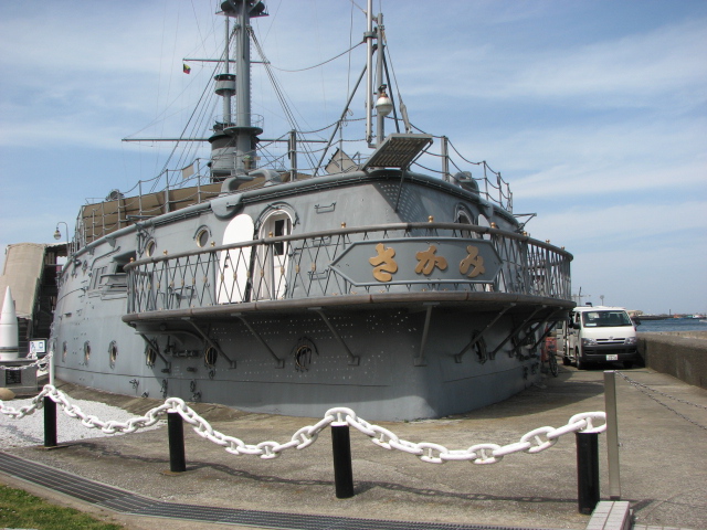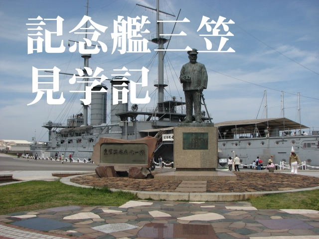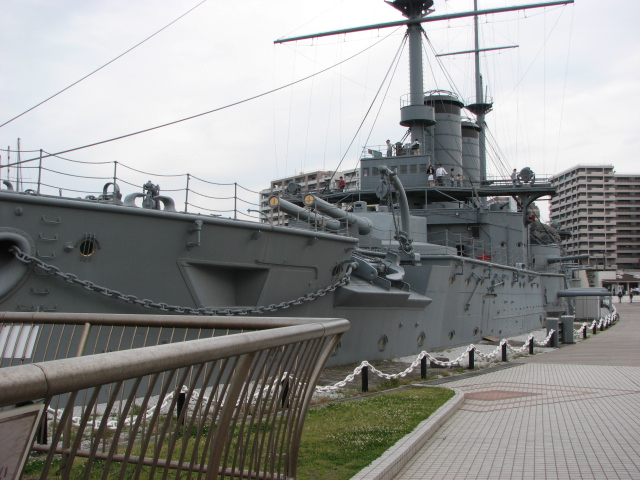 | 横須賀にある記念艦「三笠」を見に行きました。(2006年) 三笠は、明治時代に日本がイギリスのビッカース社に発注して建造された戦艦です。明治35年(1902年)に就役し、日露戦争の日本海海戦(1905年)においては連合艦隊司令長官東郷平八郎が乗艦する連合艦隊の旗艦としてロシアのバルチック艦隊と闘いました。 ちなみに先頃(※2009年11月)、明治期の日本の姿を描いた大河ドラマ「坂の上の雲」(原作:司馬遼太郎)がNHKで始まりましたが、東郷平八郎司令長官を渡哲也が、そして主役の一人である秋山真之(さねゆき)を本木雅弘が演じています。 秋山真之は日露戦争では東郷平八郎長官の下で作戦担当参謀となり、ロシアのバルチック艦隊迎撃作戦を立案し、対馬沖での日本海海戦の勝利に大きく貢献しました。東郷平八郎は、秋山真之を「智謀湧くが如し」と評し、真之の上官たちも真之の頭脳の明晰さには驚嘆し、ほとんどの作戦を真之に一任していたといいます。 三笠は大正12年(1923年)には現役を退き、その後大正15年に現在の横須賀の地に記念艦として保存されて現在に至っています。 |