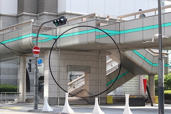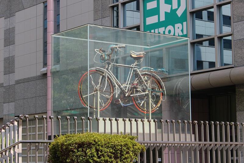 この作品の置かれている場所の下に自転車置き場があって、それのサインにもなっています。