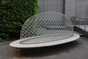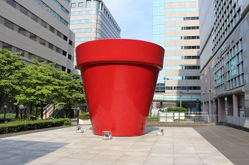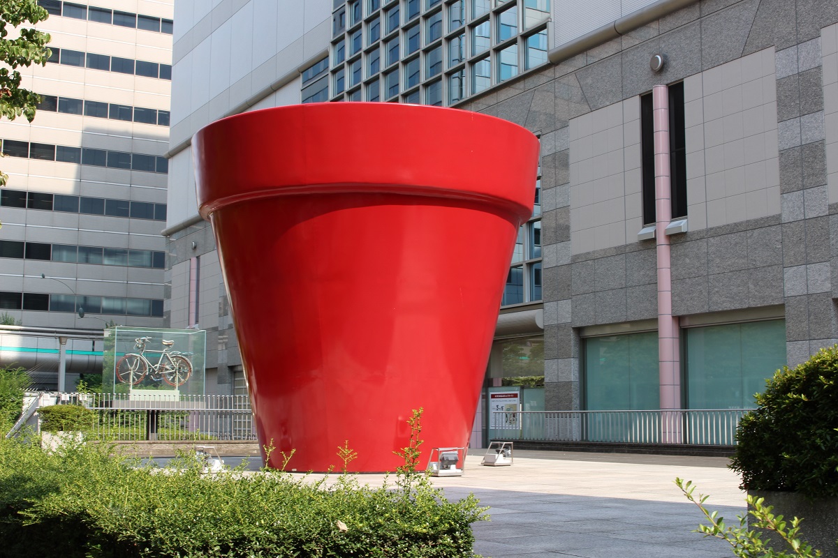 人工の植木鉢ではあるのですが、自然が無くなった都市の中にもう一度自然というものの記憶を呼び起こさせようとして作ったものです。裏話ですが、これを飛行機で運ぶことになってずいぶん大変だったそうです。