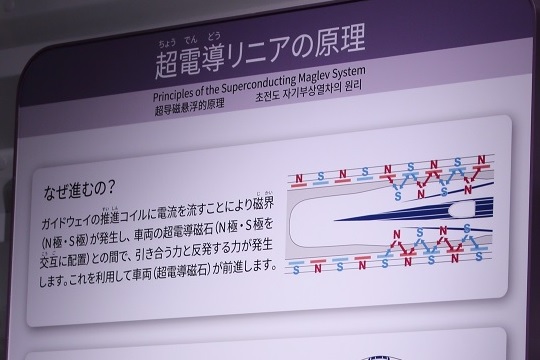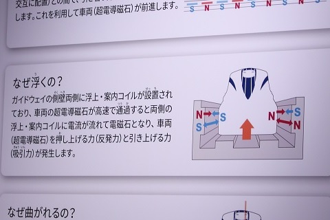 サイエンスゾーンには超電導リニアの原理がパネルで展示されていました。(写真左)
