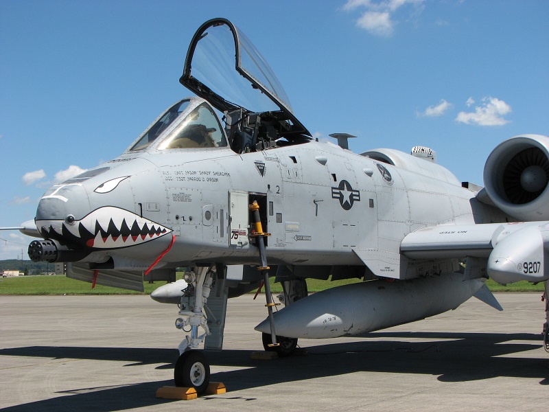 A-10は、米フェアチャイルド・リパブリック社の開発したアメリカ空軍初の近接航空支援用の攻撃機であり、低空から戦車、装甲車などの地上目標の攻撃を行います。公式の愛称は「サンダーボルトⅡ」なのですが、実際は「ウォートホッグ(イボイノシシ)」と呼ばれることが多いようです。A-10は低速、低空での飛行性能に優れていて、機首に装備された大口径30mm GAU-8 アベジャーガトリング砲は、毎分3900発の高速連射が可能となっています。
