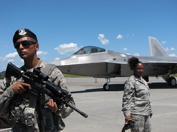 今年(2012年)の日米友好祭にはこのF-22が横田基地に来ていましたが、その回りにはマシンガンを持った米兵が警備にあたっていて、やはりF-22は大変な軍事機密を持っているのだなとつくづく感じました。