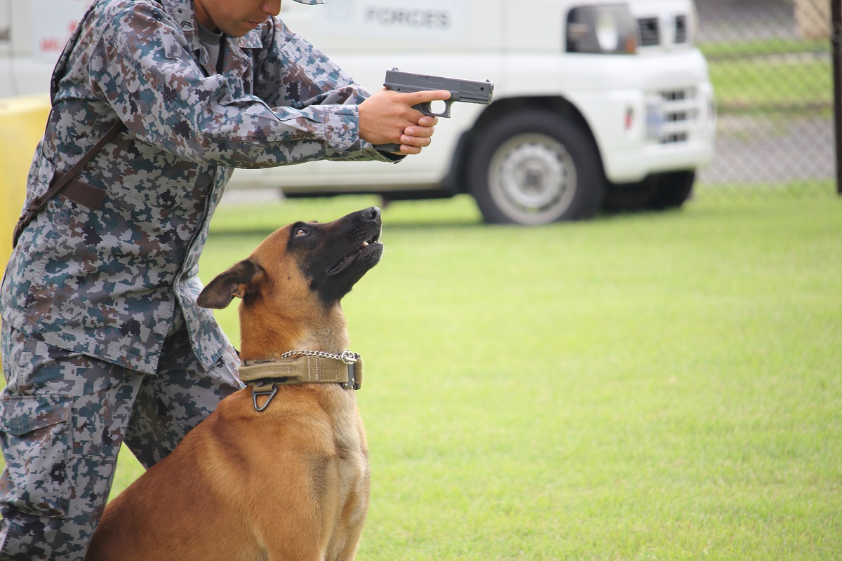 この通称は英語で「イヌ科」を表す「Canine(ケーナイン)」と発音が同じことに由来するそうで、この軍用犬の実演も「K9デモンストレーション」と呼ばれています。