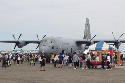 基地内では米軍や自衛隊の航空機の展示が行われているほか、アメリカンフードやグッズの売店、音楽やダンスのライブステージなどもあり、様々な楽しみ方ができるお祭りとなっています。