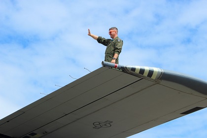 RQ-4の主翼は空気の薄い高高度でも大きな揚力を発生できるよう、翼幅が機体全長の3倍近くもあり、かつアスペクト比(縦横比)も極めて大きくグライダーの主翼のような細長い形状をしています。また機首の膨らんだ部分には衛星通信用のアンテナが収められていて衛星経由で地上局と通信を行うことが出来るようになっています。
