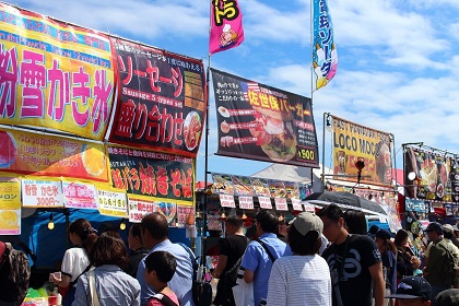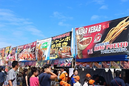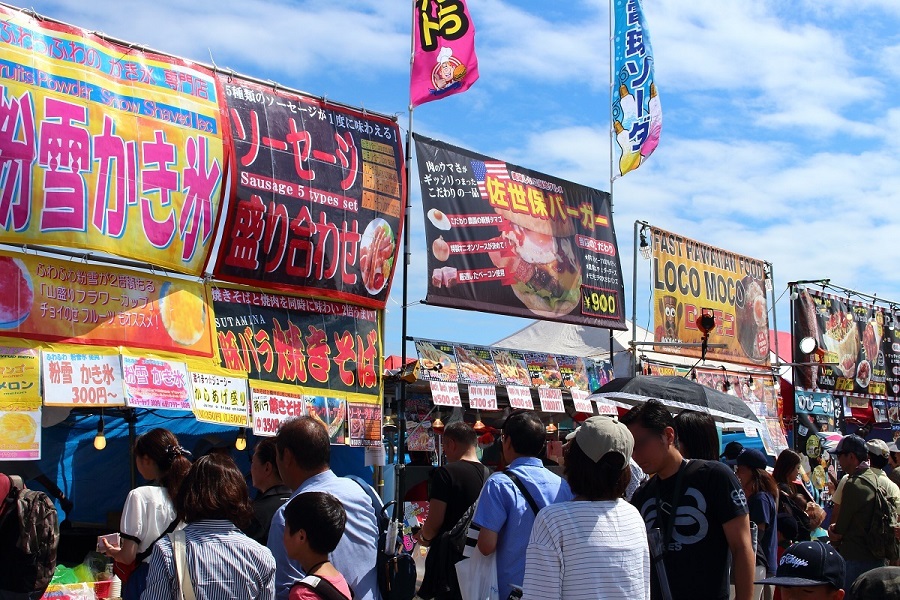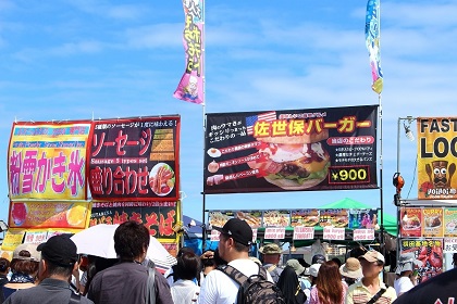 基地内にはたくさんの売店が並び、ビーフステーキ、ハンバーガー、ホットドッグといった日本とはまた違う、本格的なビッグサイズのアメリカンフーズを楽しむことができます。また、やきそばなど日本的な食事を提供するお店の出店もあり、日米の様々な美食を味わえるのも日米友好祭の大きな魅力と言えるでしょう。
