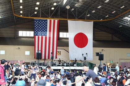 食事以外にも航空グッズや米軍オリジナルグッズの売店なども軒を連ねますが、日米の友好祭だけのことはあり、店によっては代金の支払いは「円」だけでなく「ドル」でも可能となっております。滑走路の屋外ステージや、格納庫を使った屋内ステージでも音楽演奏、ダンスパフォーマンスなど、いろいろな日米のライブが行われており、日米友好祭が行われている横田基地は大変にぎやかで様々な楽しみかたができるお祭りとなっています。