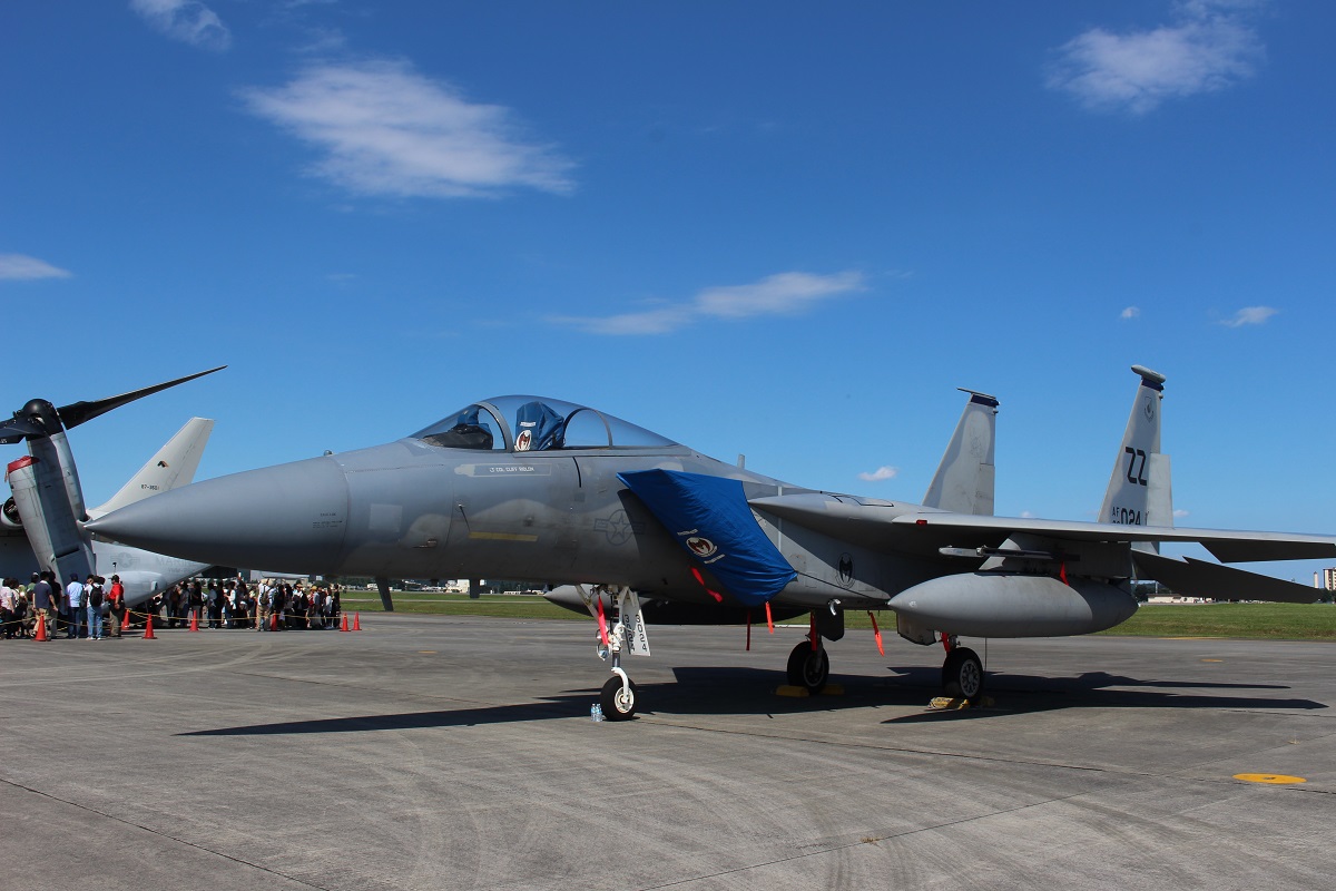 2015年9月の日米友好祭で展示されていた米空軍の「F-15」戦闘機です。 |