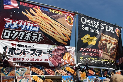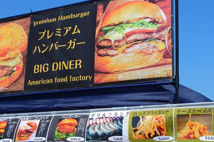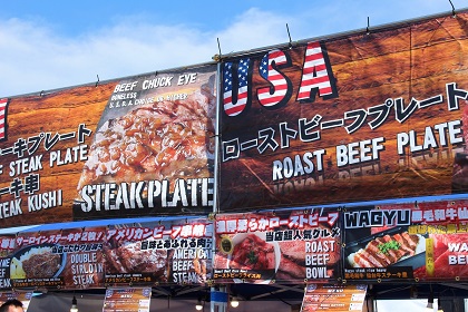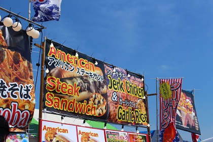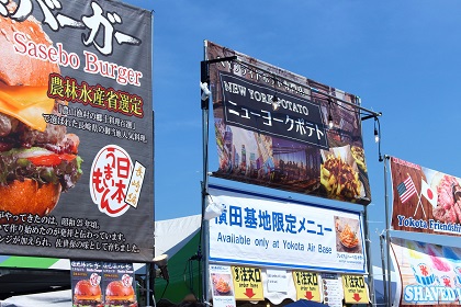 基地内にはたくさんの売店が並び、ビーフステーキ、ハンバーガー、ホットドッグといった日本とはまた違う、本格的なビッグサイズのアメリカンフーズを楽しむことができます。また、やきそばなど日本的な食事を提供するお店の出店もあり、日米の様々な美食を味わえるのも日米友好祭の大きな魅力と言えるでしょう。