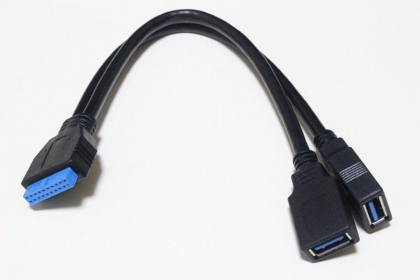 今回マザーボードに増設したUSB3.0インターフェースはピンヘッダーの形状ですので付属ケーブルの